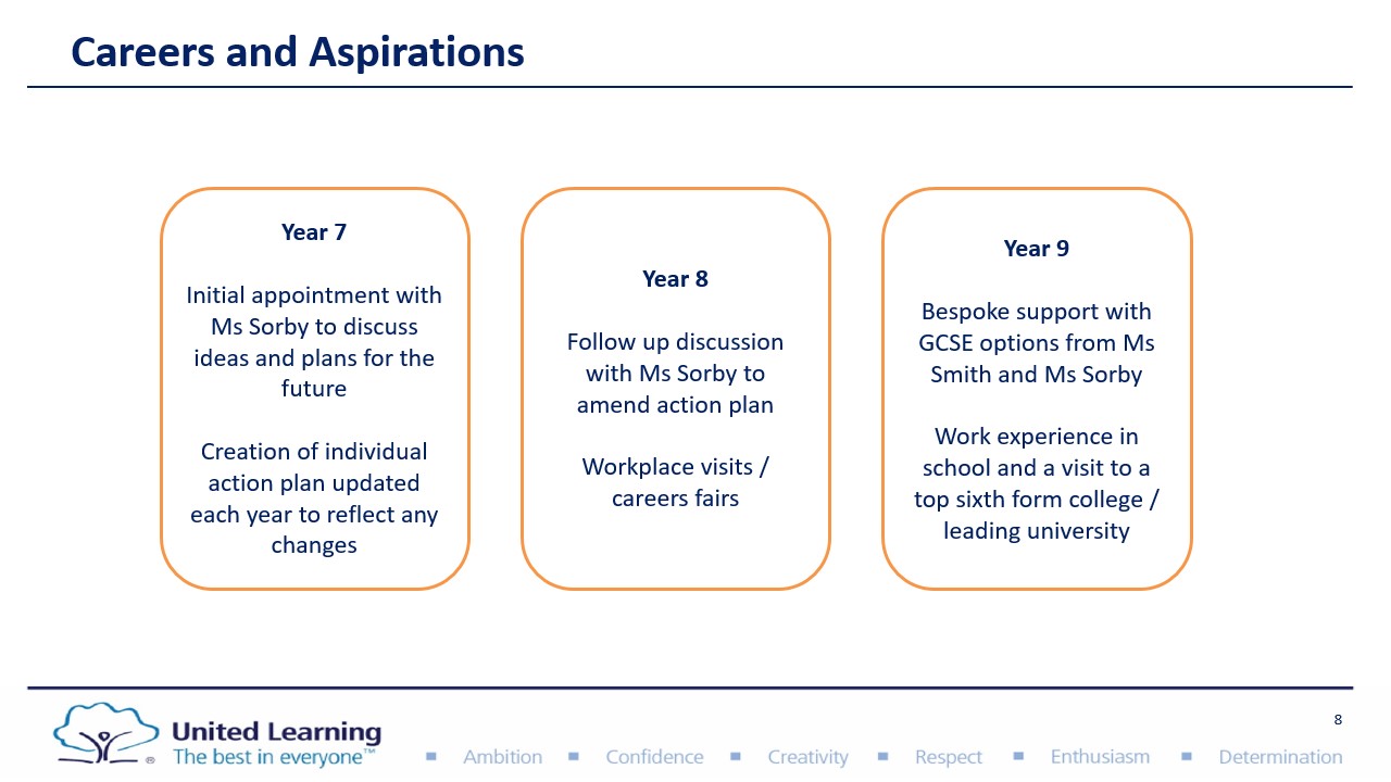 We expect all of our grammar stream students to leave with a suite of GCSEs achieved at the very highest grades. However, rather than just leaving with excellent grades, we want them to leave as fully rounded individuals, achieving success across the sports field, the dance studios, the theatres and concert halls, or whichever fields our young men and women have the talents and interests in. We will work with students to raise their aspirations to perform at the highest level in their chosen areas, facilitating them to become future leaders and enrich the world.